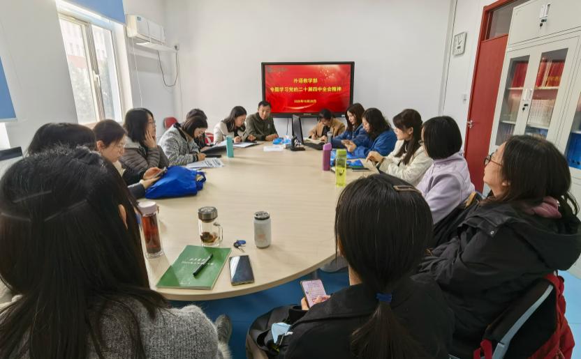 10月28日下午,外语教学部召开专题学习党的二十届四中全会精神会,开展集体备课研讨。