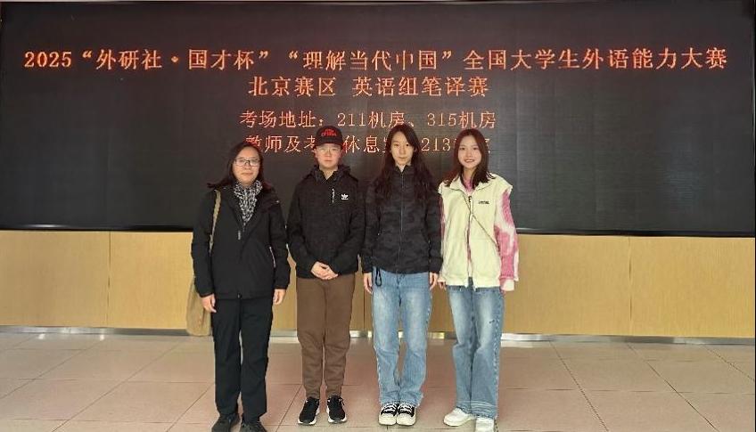 11月1日,在由北京外国语大学承办的2025“外研社·国才杯”“理解当代中国”全国大学生外语能力大赛北京赛区英语组笔译赛上,由我校外语部教师安克飞、邢玉红指导的学生史维萱、张浩旸发挥稳定,顺利完赛。