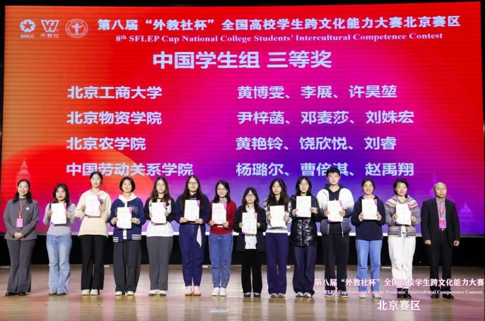 2025年11月2日,第八届“外教社杯”全国高校学生跨文化能力大赛北京赛区比赛圆满落幕。我校学生团队表现出色,荣获中国学生组三等奖,刘恒老师获优秀指导教师奖。