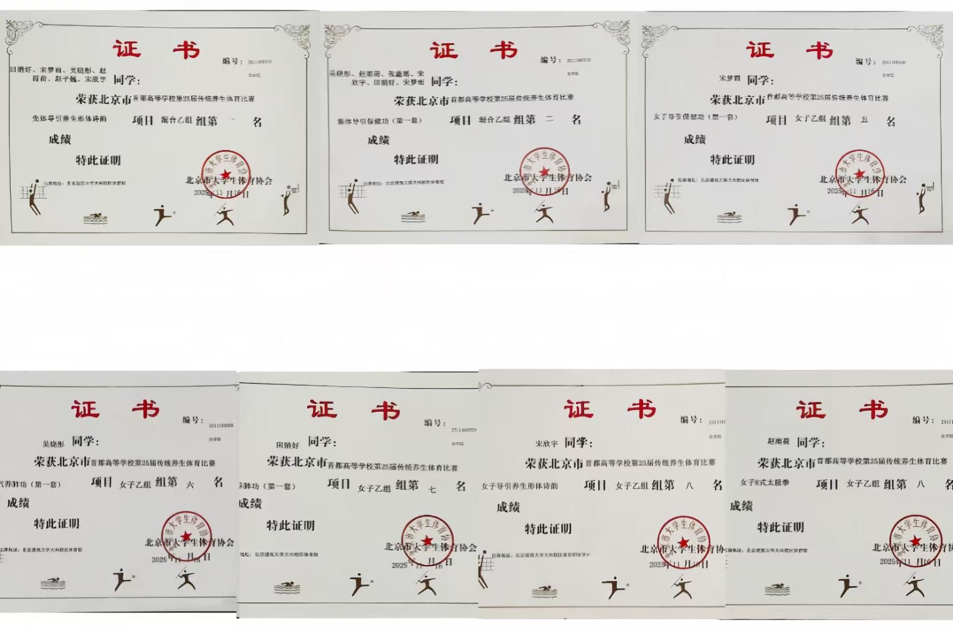 11月20日,首都高等学校第25届传统养生体育比赛圆满落幕。首次组队参赛的北京农学院代表队表现优异,共斩获七项荣誉,包括两项集体项目一等奖、二等奖以及多项个人前八名,展现出学校在传统体育育人方面的扎实成效。