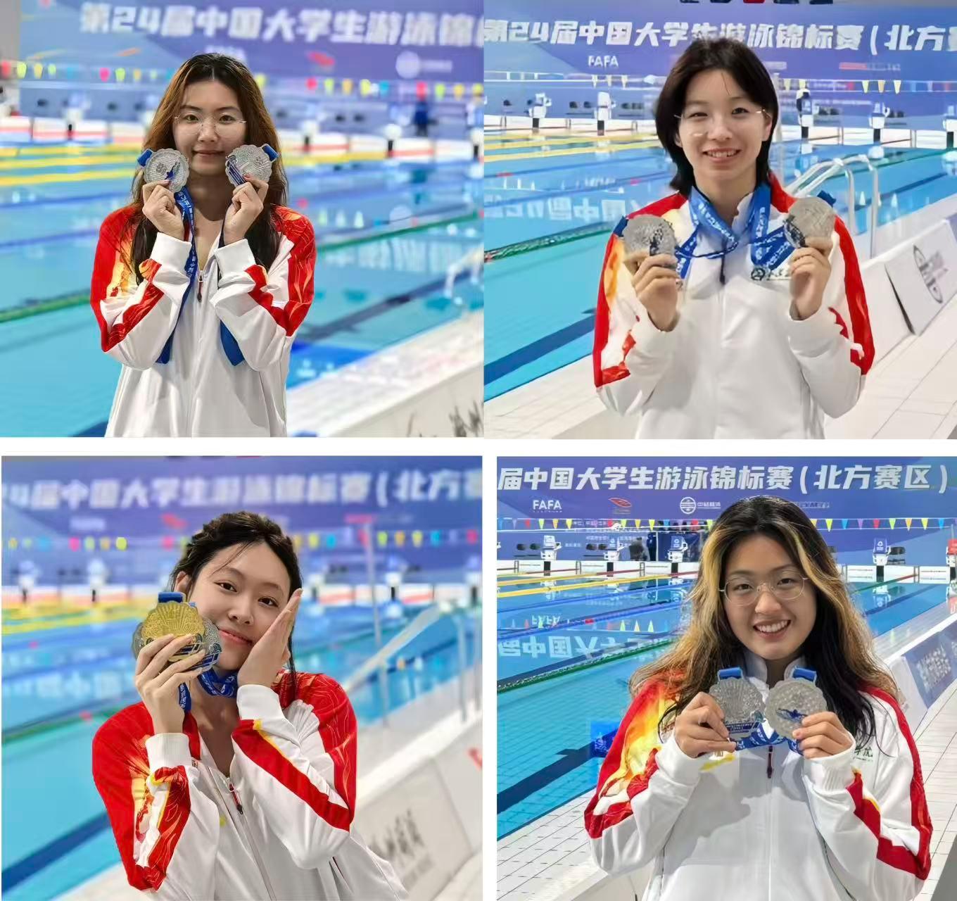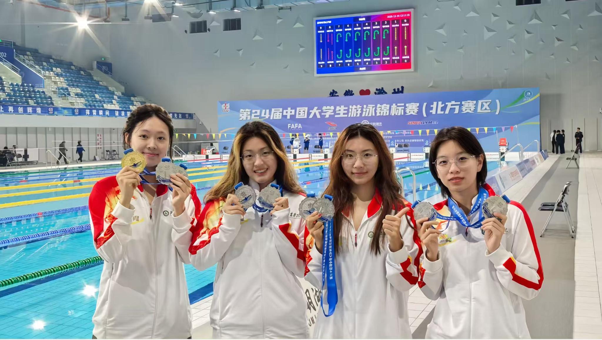 2025年12月11日,第24届中国大学生游泳锦标赛(北方赛区)在安徽滁州奥体中心游泳馆圆满落幕。本次赛事由中国学生体育联合会主办,共吸引包括北大、清华等全国114所高校的737名运动员参赛。在为期四天、共计八个单元的激烈比拼中,各校选手展现出了北方高校年度顶尖的游泳竞技水平。我校派出由教练吴宝利老师带领的5人游泳队参赛。队员们奋勇争先、团结协作,在比赛中表现优异,最终斩获1项冠军、2项亚军、1项季军、1项第五名、2项第六名、1项第八名,荣获女子团体总分第四名的游泳成绩,再次为学校赢得荣光。