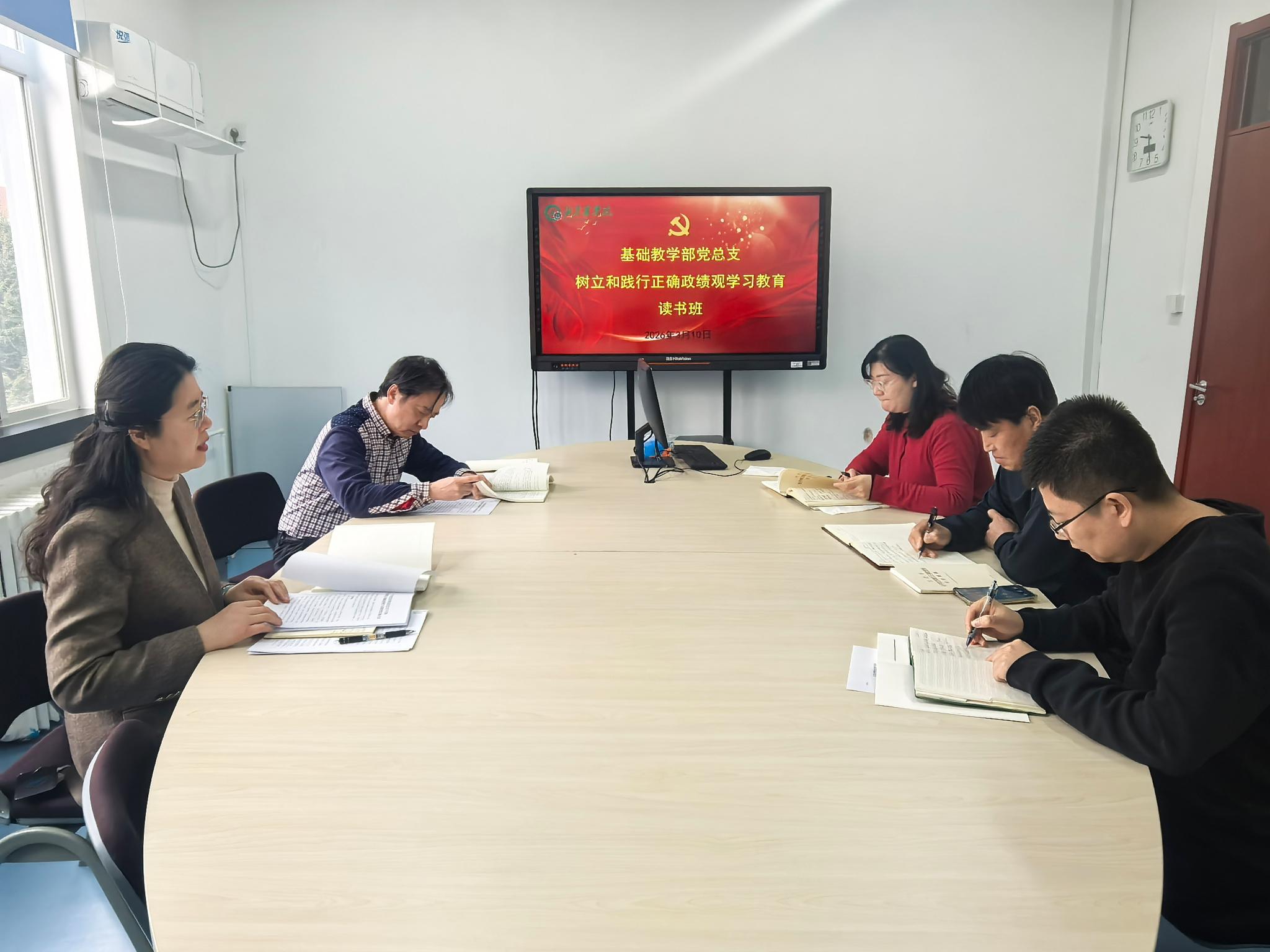 3月10日,基础教学部党总支树立和践行正确政绩观学习教育读书班开班,党总支书记牟玉荣主持会议。领导班子成员、党总支委员参会。
