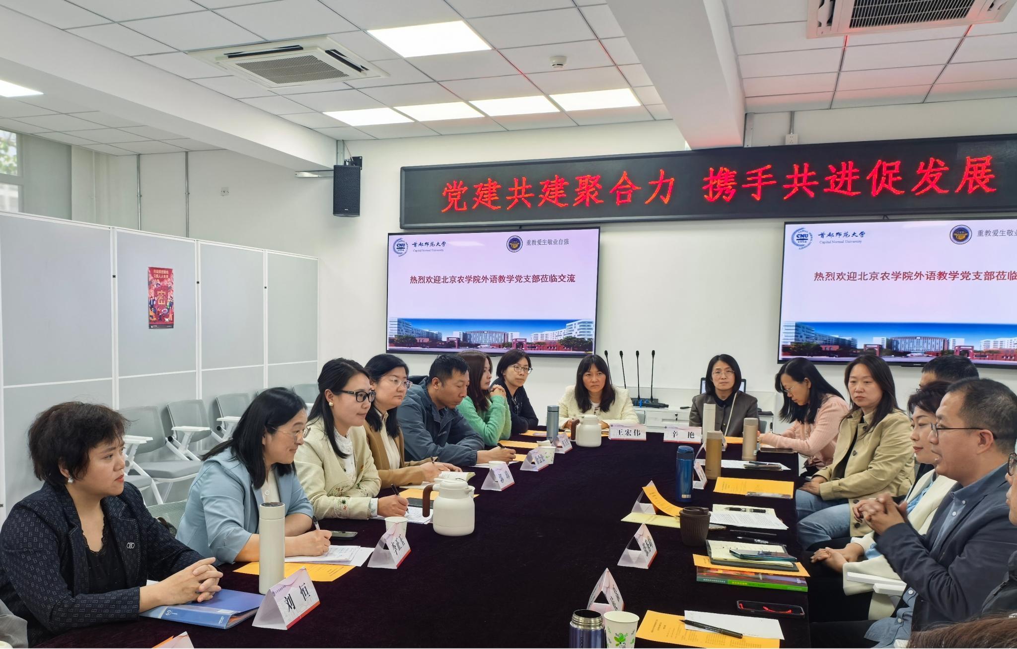 为深入落实党建引领,搭建校际外语教学交流平台,推动党建与教学业务深度融合,2026年4月22日下午,北京农学院外语教师党支部与首都师范大学大学英语教研部教师第二党支部,在首都师范大学本部开展党建共建交流活动,围绕支部建设、教学改革、课程思政等核心议题,开展深入交流研讨,凝聚育人共识、共促发展。