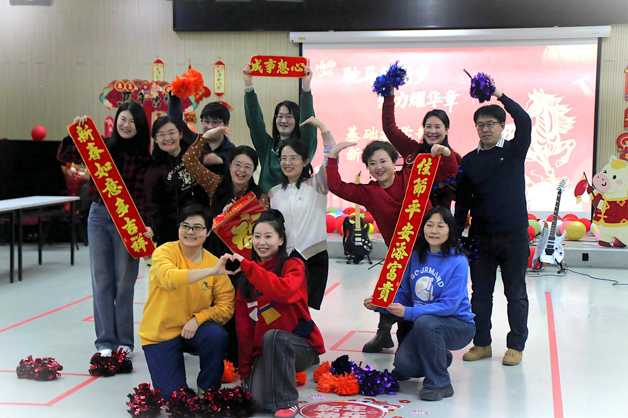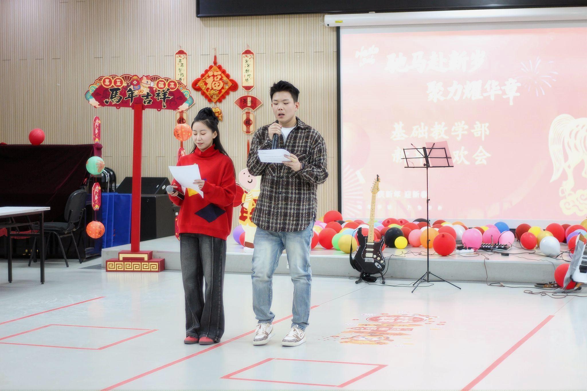 为丰富教职工文化生活、凝聚育人力量、营造快乐、祥和节日氛围,2026年1月21日,基础教学部分工会“凝心聚力迎新春,笃行实干启新程”新年联欢会在活动中心104室热烈启幕。全体教职工欢聚一堂,载歌载舞,共辞旧岁、共迎佳节、共话未来。