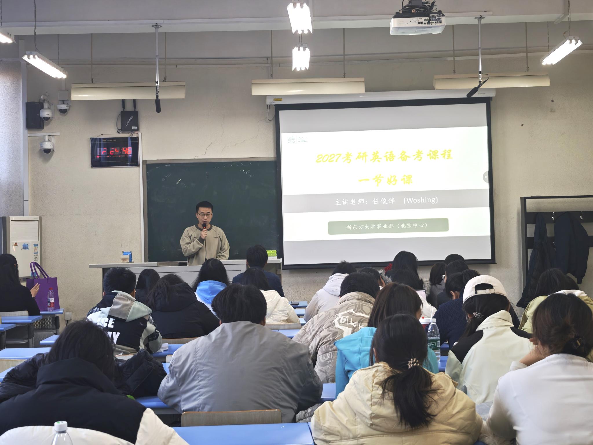 为助力我校考研学子精准备考、破解英语复习难题,11月20日中午,外语教学部特邀新东方大学生学习与发展中心资深教师任俊锋,为北农学子带来一场精彩辅导讲座。新东方团队负责人毛伟庆亦率队到场,为同学们答疑解惑。