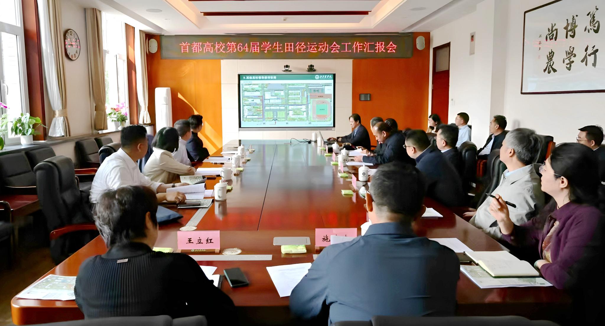 北京市大体协、我校体育部、团委相关负责人分别汇报了首都高校第64届学生田径运动会筹备、开幕式演出组织等进展情况。